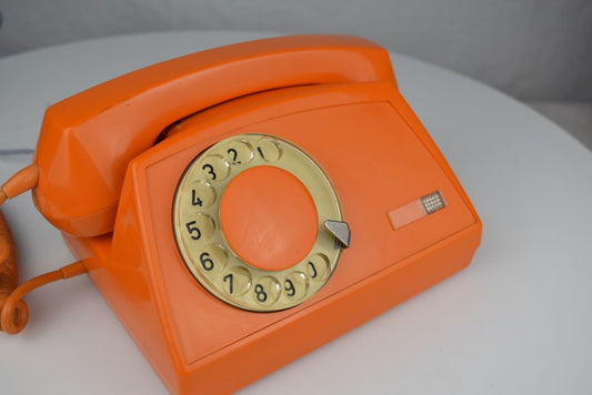 Soviet Era Rotary Dial Phone - Orange