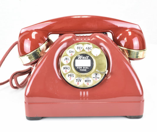 Red Wood Wall Telephone - Vintage Farmhouse Decor