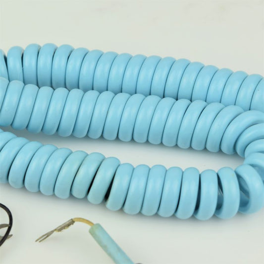 Cord - Handset - Aqua Blue - Hardwired Curly - 4 Conductor - Spade Terminations