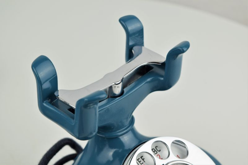 Cords – The phone has been outfitted with brand new colour match blue cloth covered cords that are made in house on the same type of equipment originally used by the phone companies. They look amazing. The line cord has a modular connection to facilitate a modern connection to your wall jack.