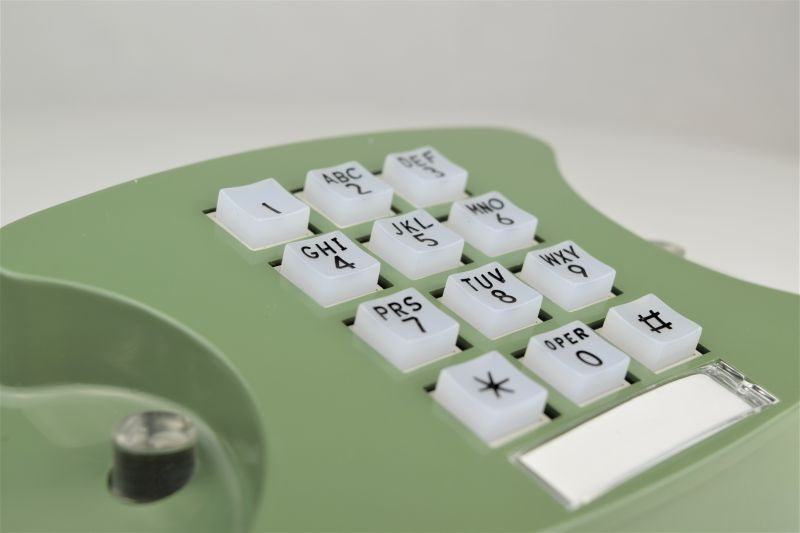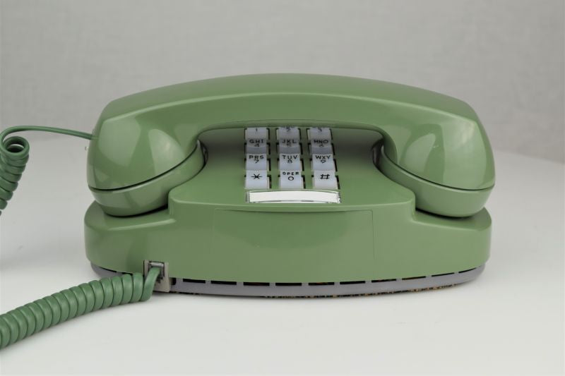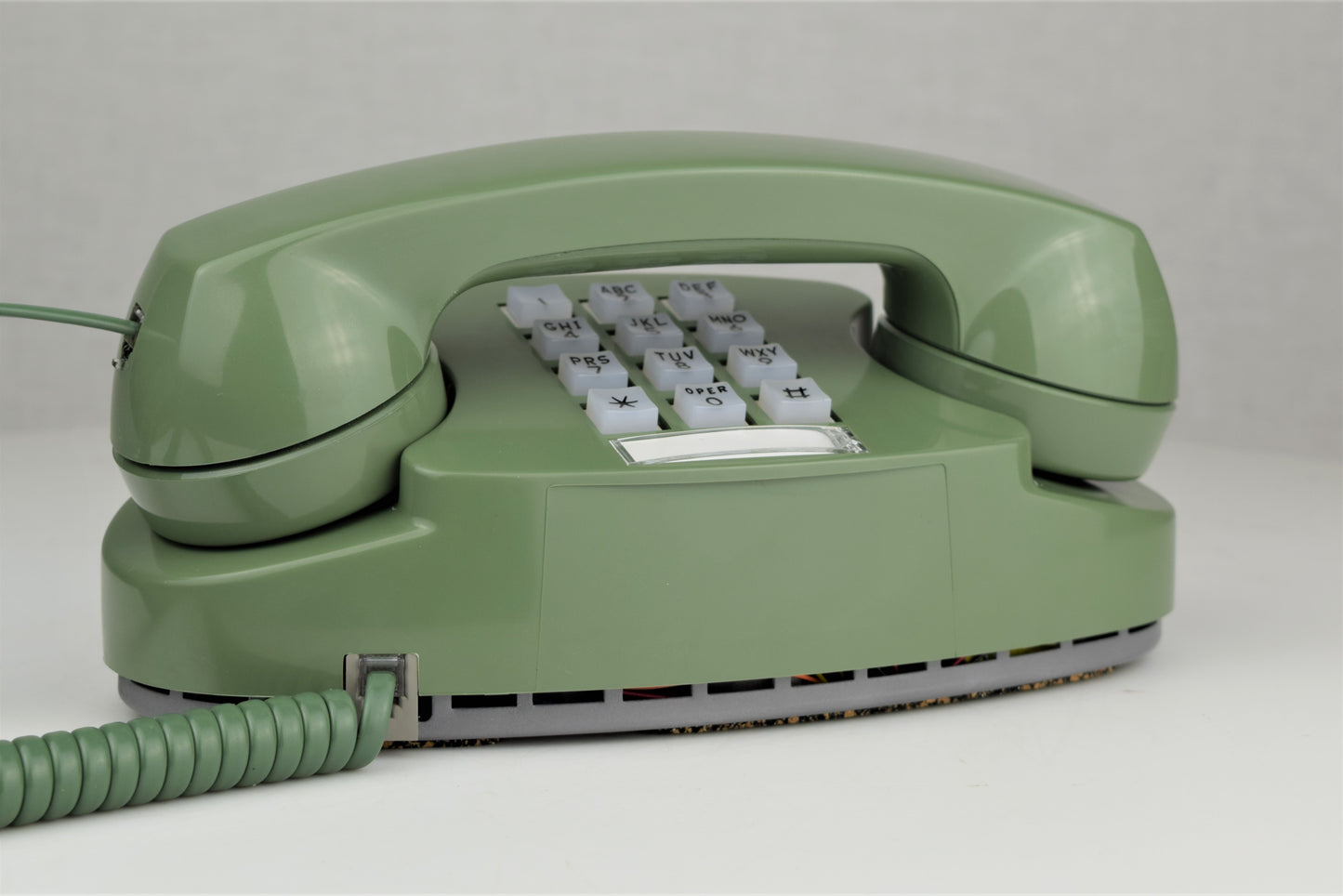 The 1970s come alive again with this fantastic moss green Western Electric 2702 Touch Tone Princess Phone.
