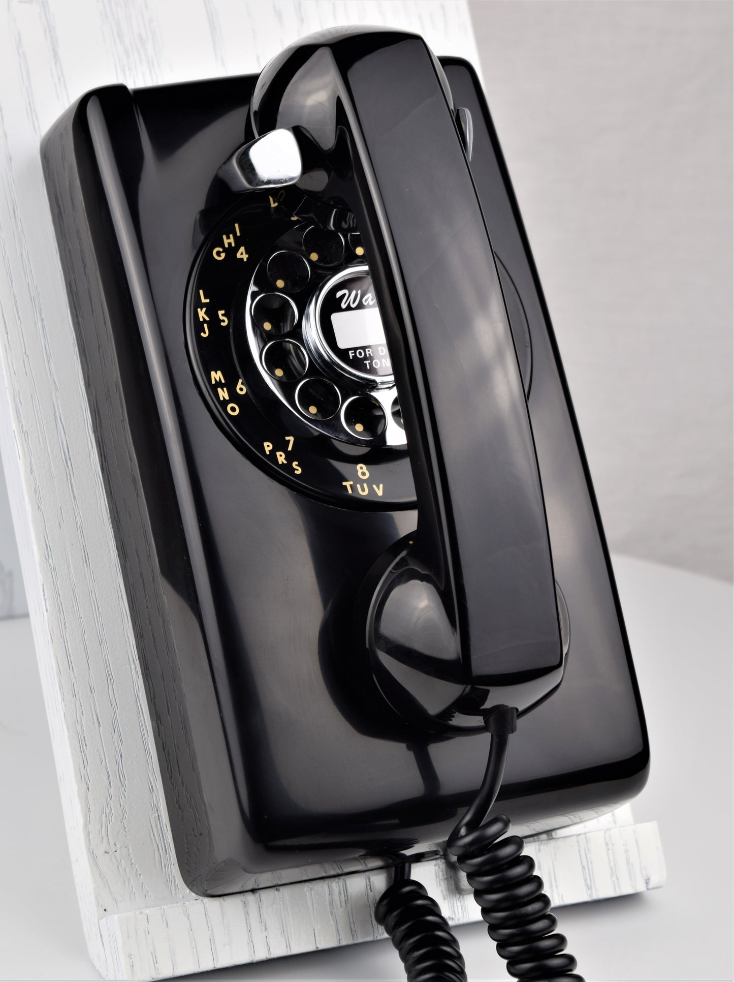The 554 is the wall version of the famed model 500. Both the 500s and 554’s became so popular that the designer, Western Electric, licensed out the manufacturing of the phones to other companies in order to meet demand.