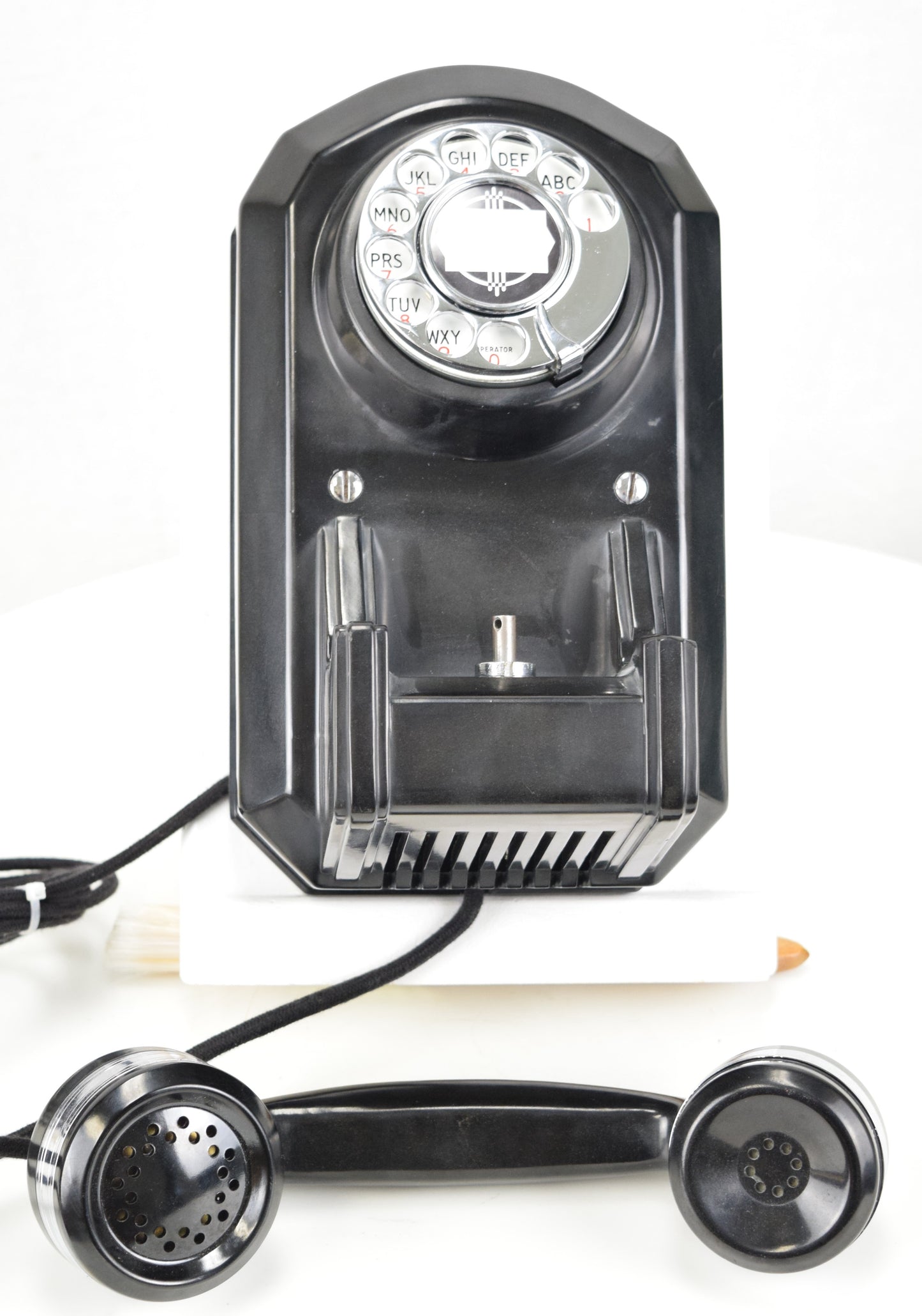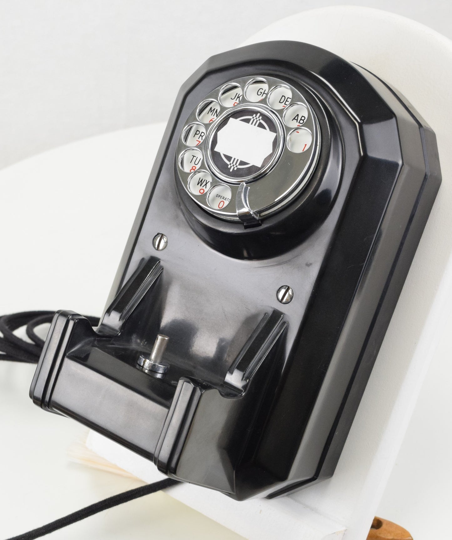 Automatic Electric 1940s Wall Telephone - Black with Chrome Trim