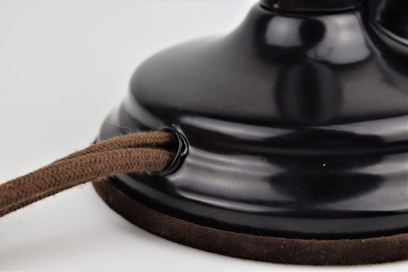 Cords – The phone has been outfitted with brand new cloth covered cords that are made in house on the same type of equipment originally used by the phone companies. They look amazing. You can choose from either black or brown cloth cords. The line cord has a modular connection to facilitate a modern connection to your wall jack.