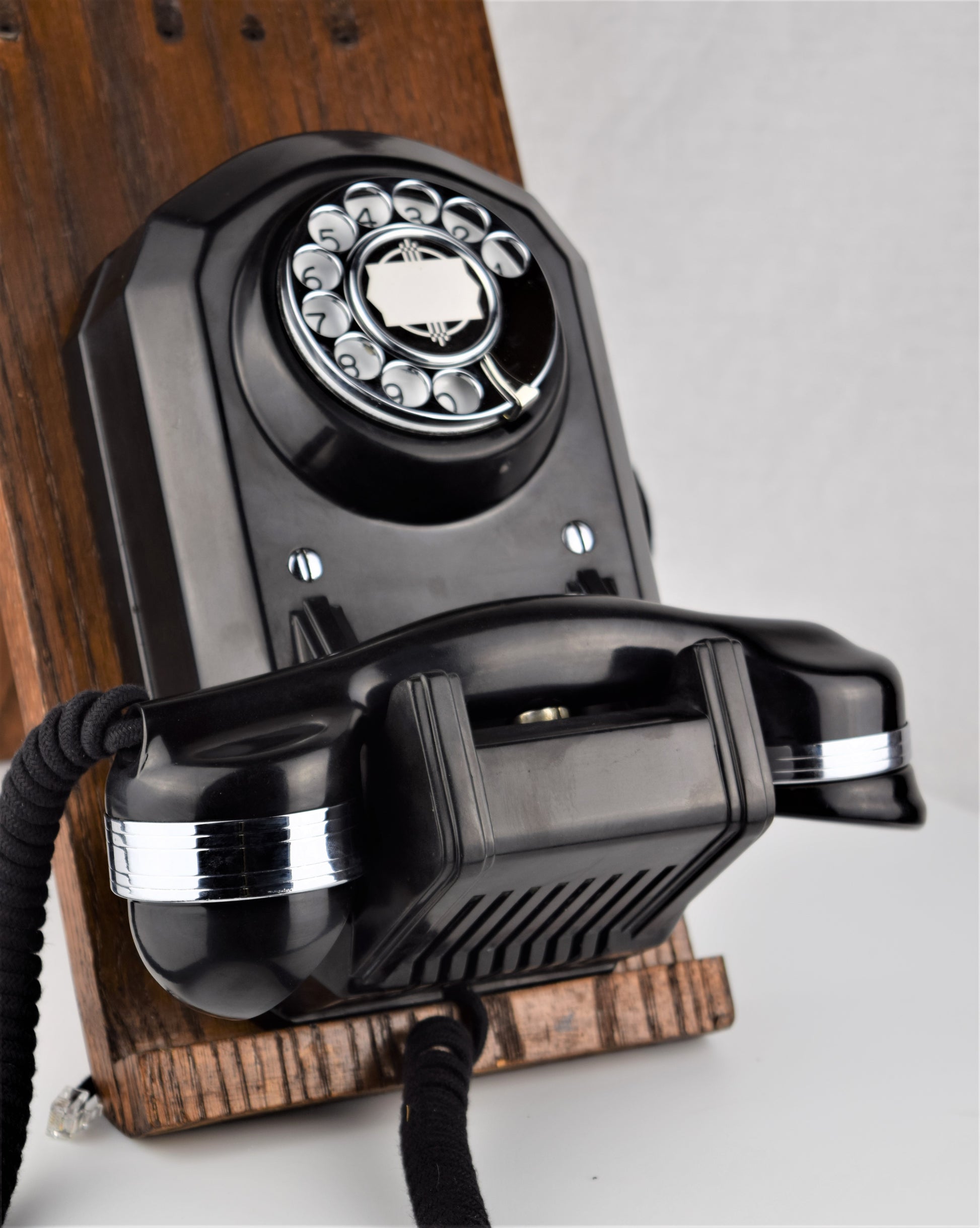 Cords – The phone has been outfitted with brand new cloth covered cords that are made in house on the same type of equipment originally used by the phone companies. They look amazing. You can choose from either black or brown cloth cords. The line cord has a modular connection to facilitate a modern connection to your wall jack.
