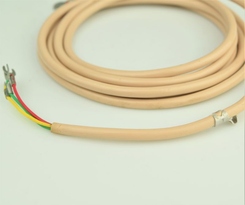 Beige 3 conductor round vinyl covered line cord with spade terminations that can be used in the restoration of many types of classic telephones. Choose your length.