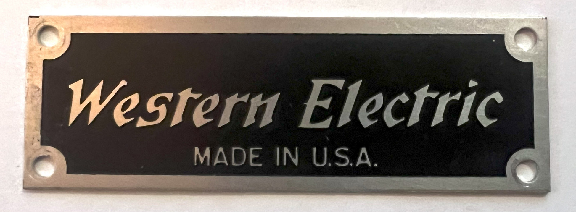 Brass Badge - Western Electric - Black Background - 1"x 3"