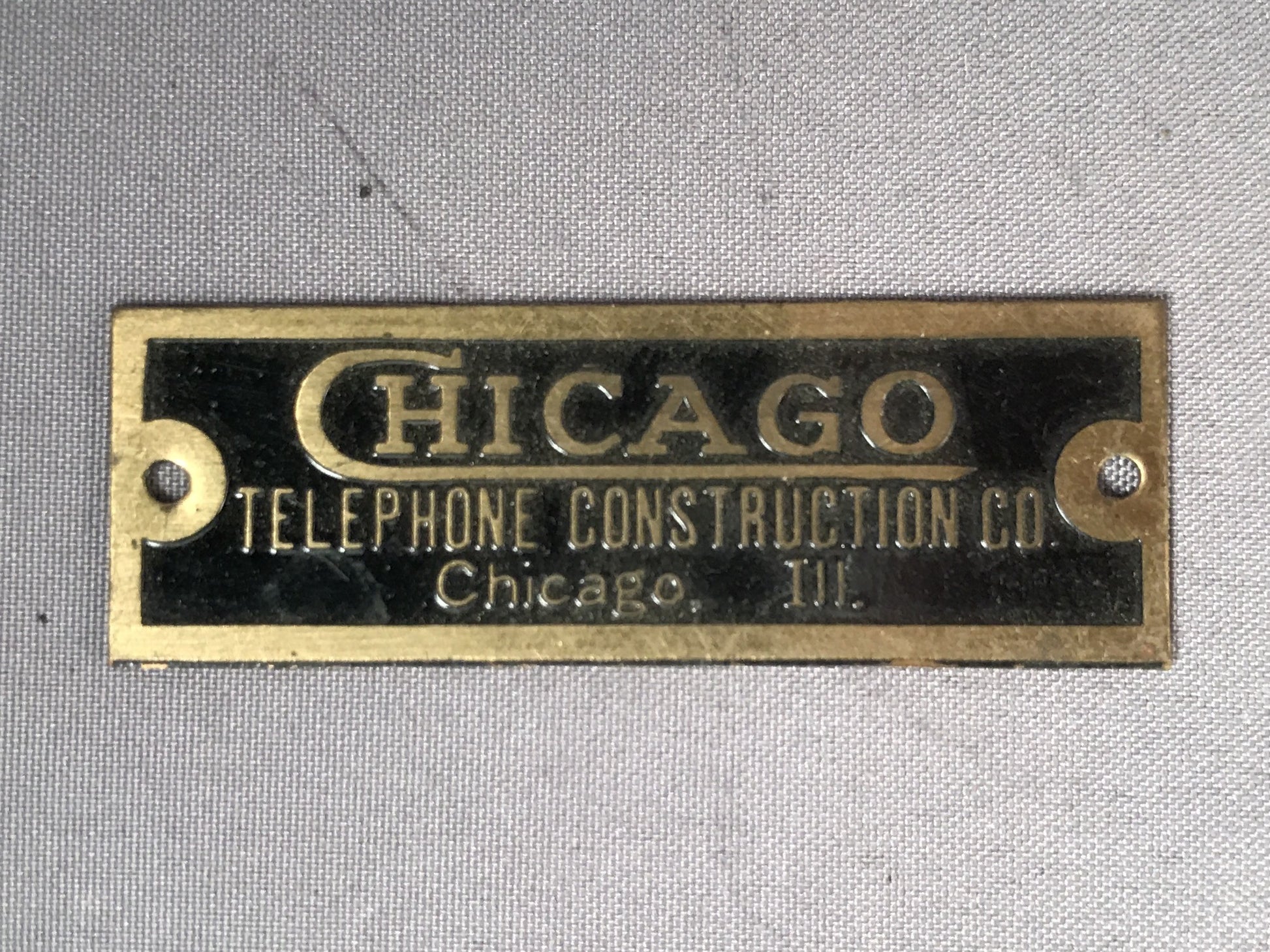 Brass Badge - Chicago Telephone Construction Co. - 1/2" x 1.5"