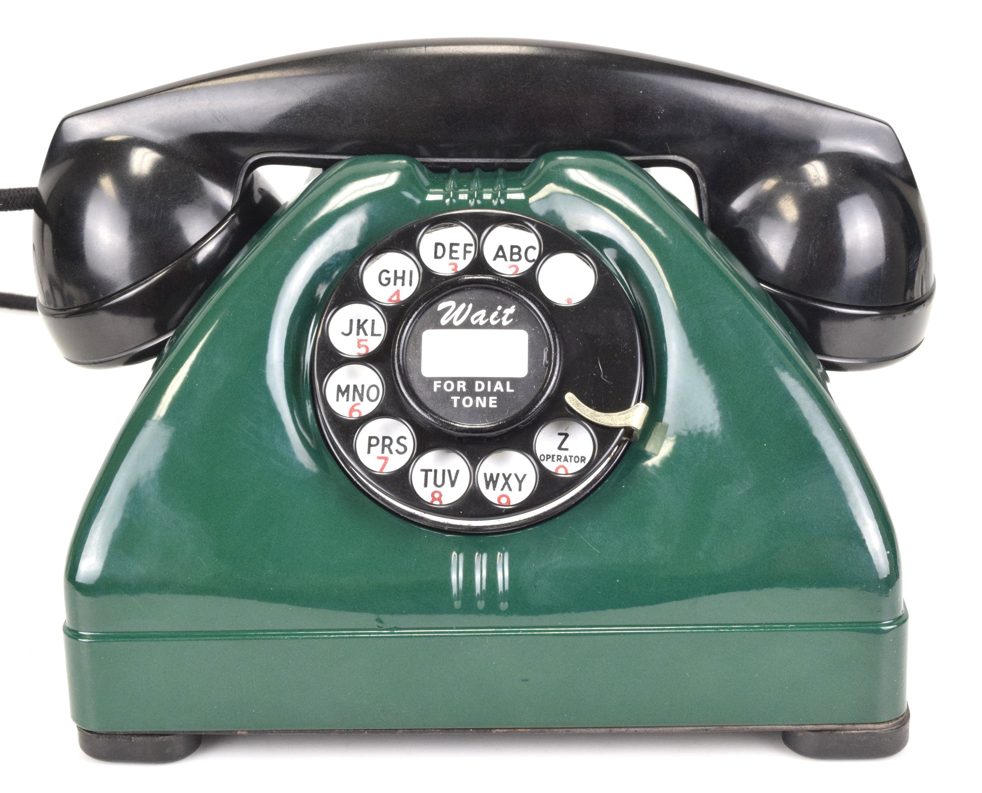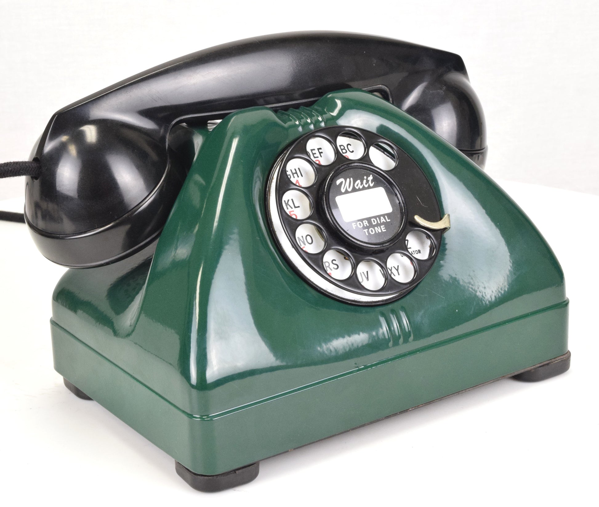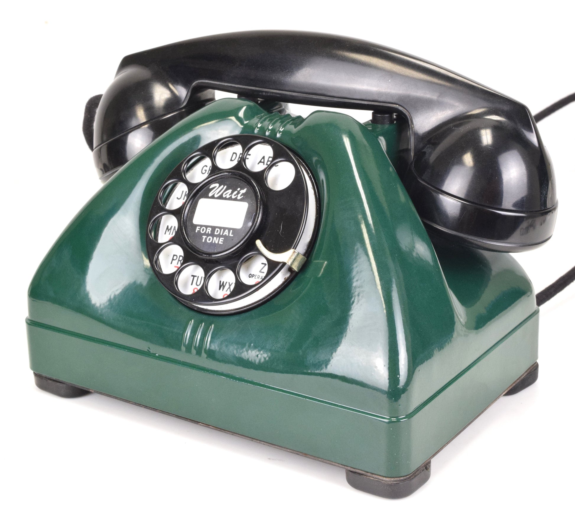 Cords – The phone has been outfitted with brand new cloth covered cords that are made in house on the same type of equipment originally used by the phone companies. They look amazing. You can choose from either black or brown cloth cords. The line cord has a modular connection to facilitate a modern connection to your wall jack.