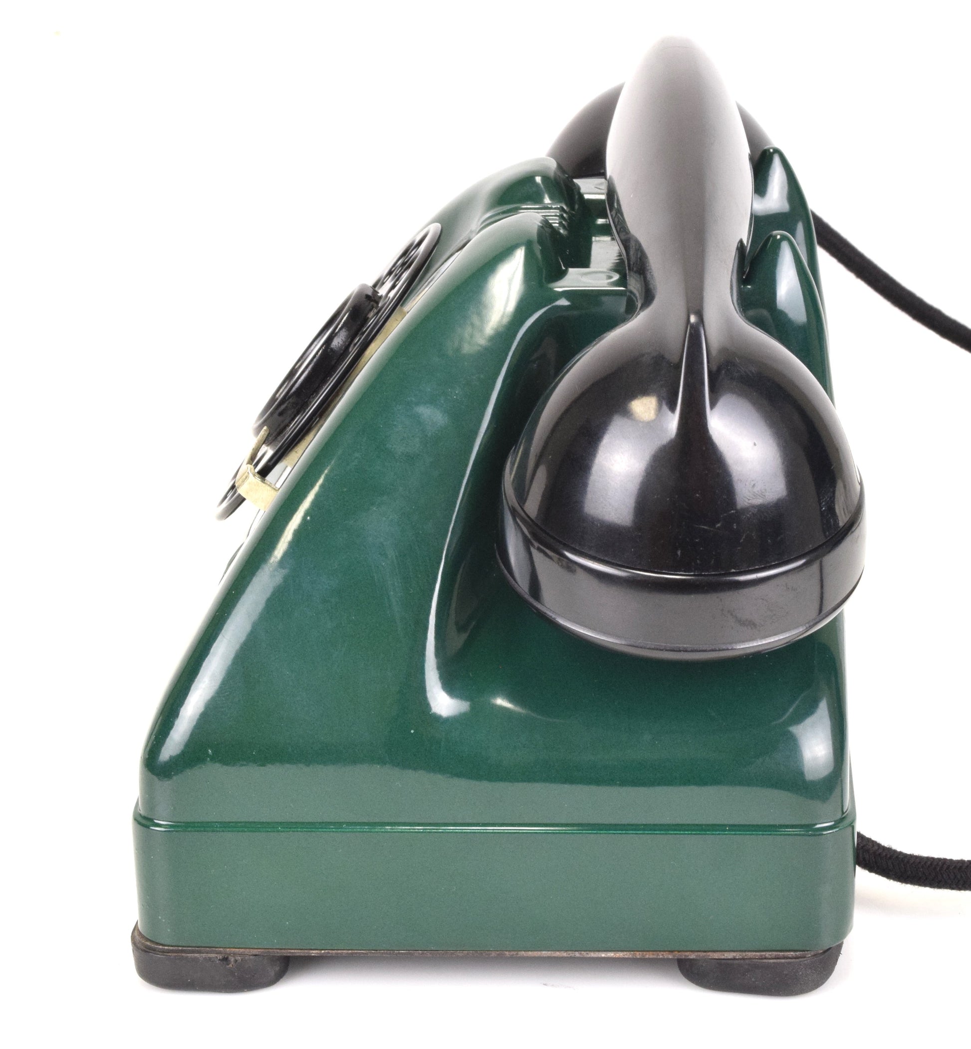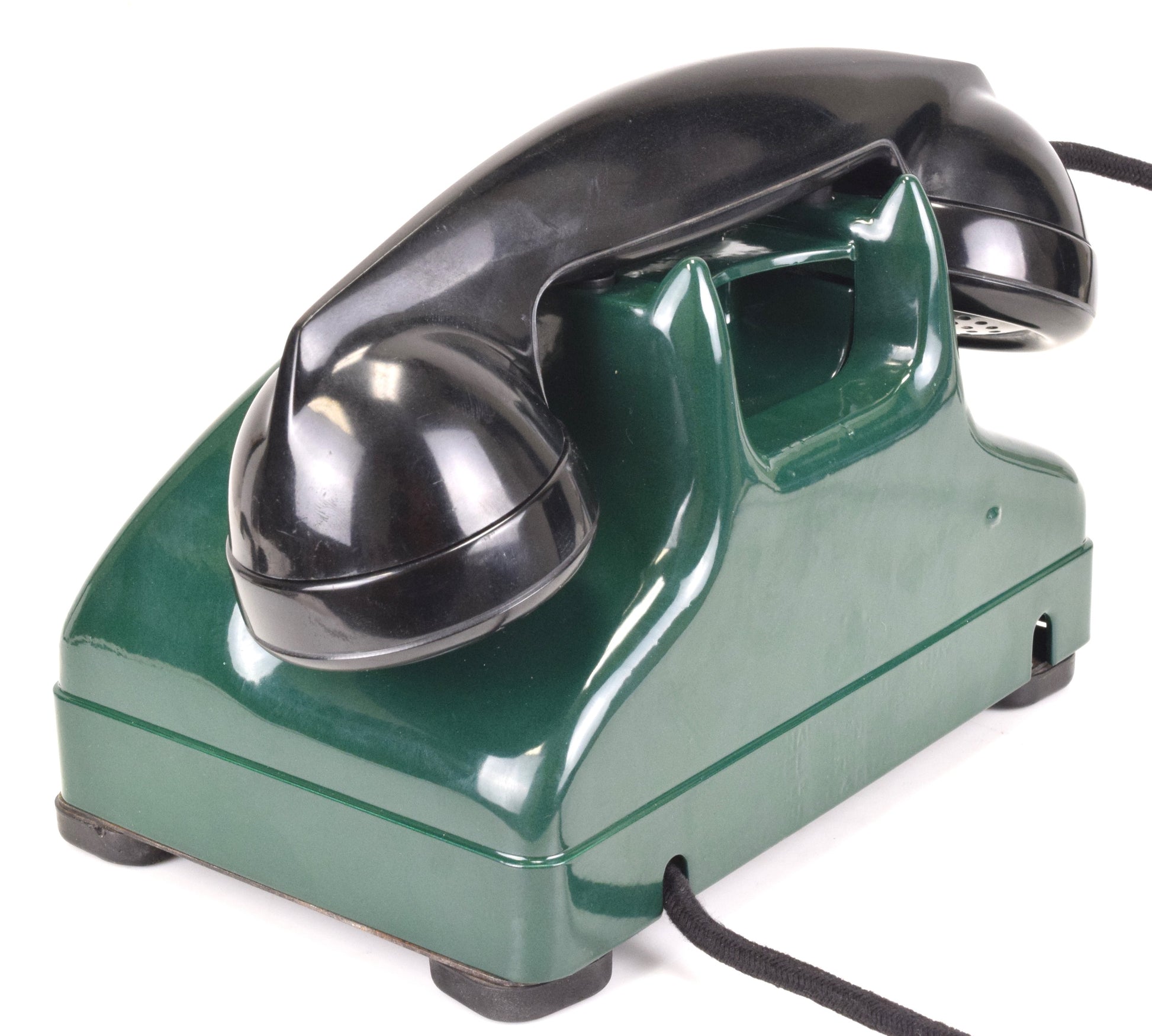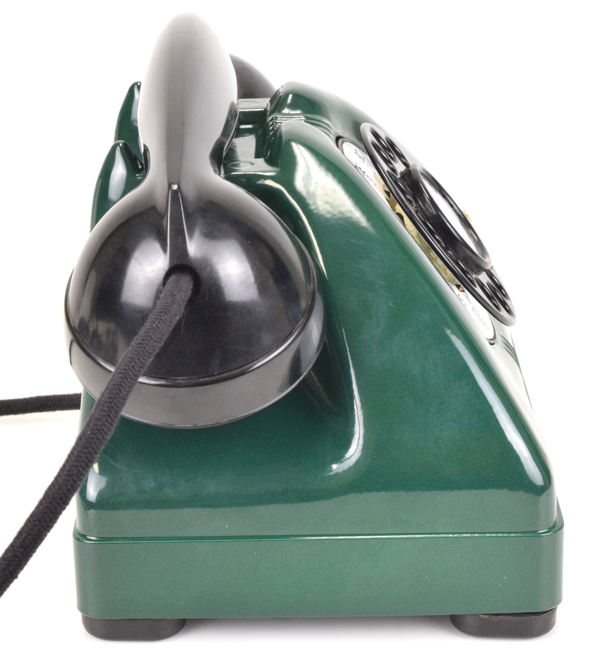 Cords – The phone has been outfitted with brand new cloth covered cords that are made in house on the same type of equipment originally used by the phone companies. They look amazing. You can choose from either black or brown cloth cords. The line cord has a modular connection to facilitate a modern connection to your wall jack.