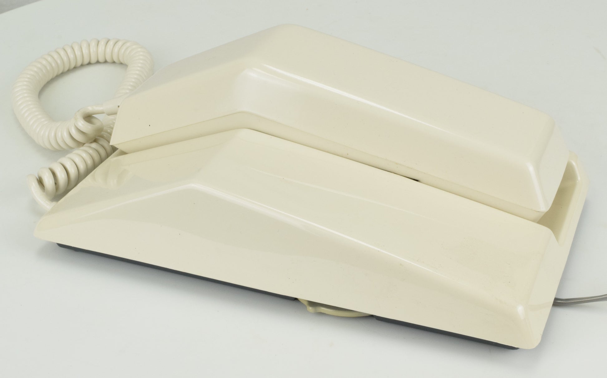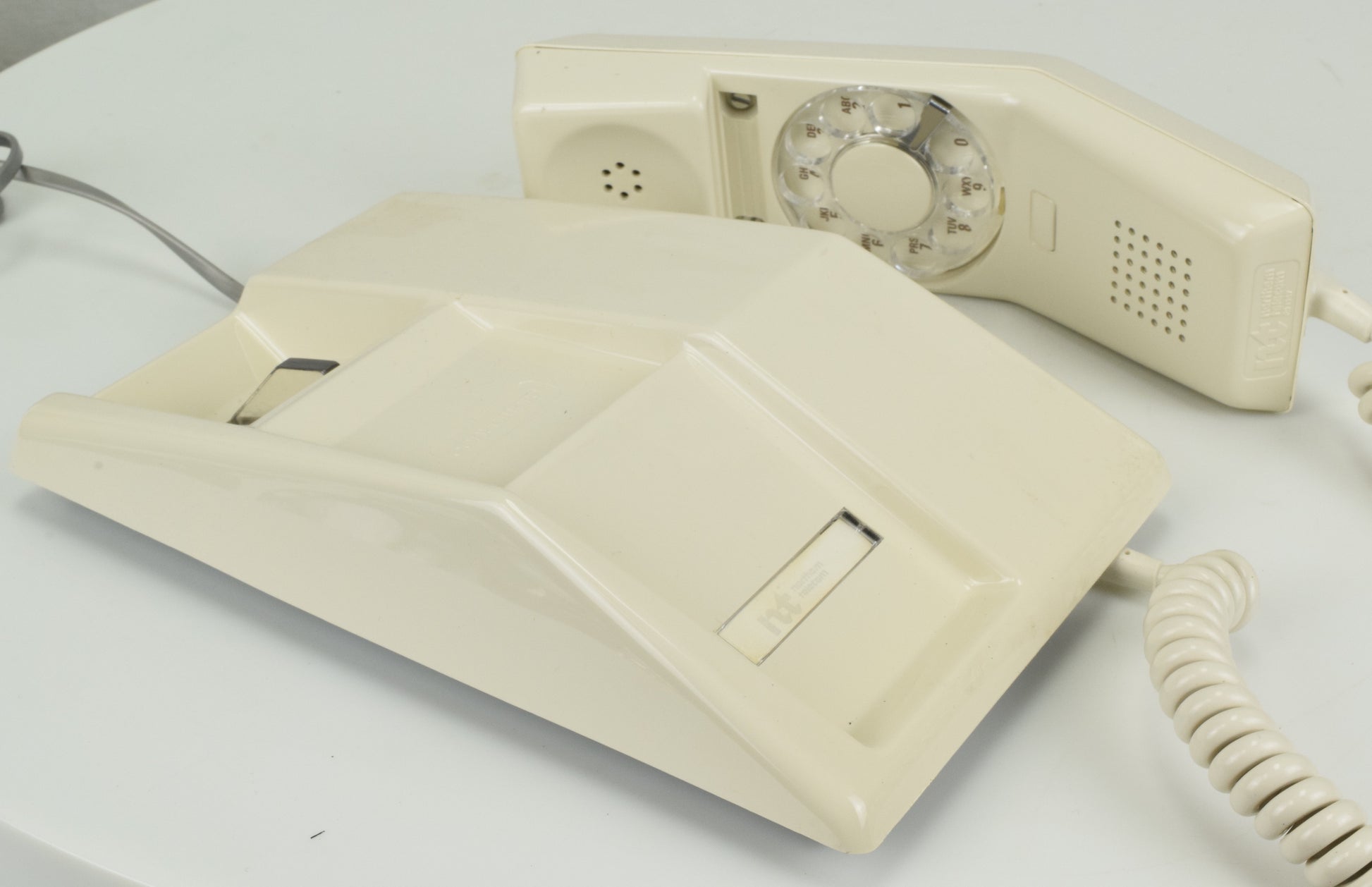 Here is a great piece of working vintage decor. Inspired by Eames era styling, the Northern Electric Contempra was first introduced in 1968 in a rotary dial version. The touch tone Contempra was released a few years later. Although the Contempra was available in a variety of colors, this model that we are selling here is sure to be the conversation starter in your house for years to come. The Contempra was uniquely designed so that it could be used as either a wall mounted, or as a desk phone. This phone was manufactured at a time when the telephone company still owned all the telephone equipment that was attached to their lines. As a result, the Contempra is very solid and has the feel of a piece of workmanship that was clearly designed to last.