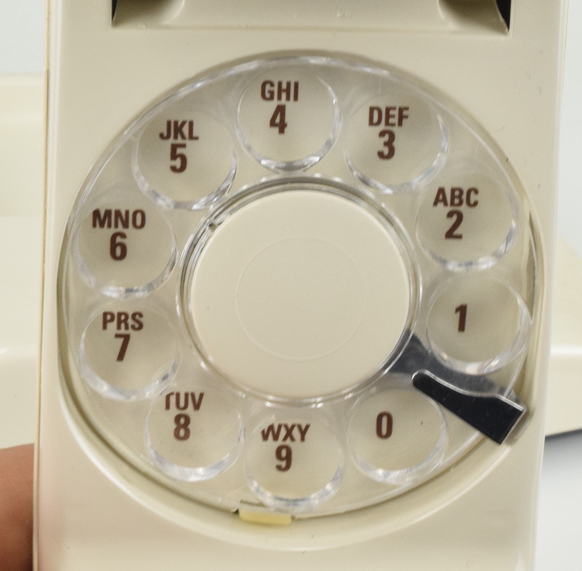 Almond Colored Northern Telecom Contempra telephone with rotary dial.