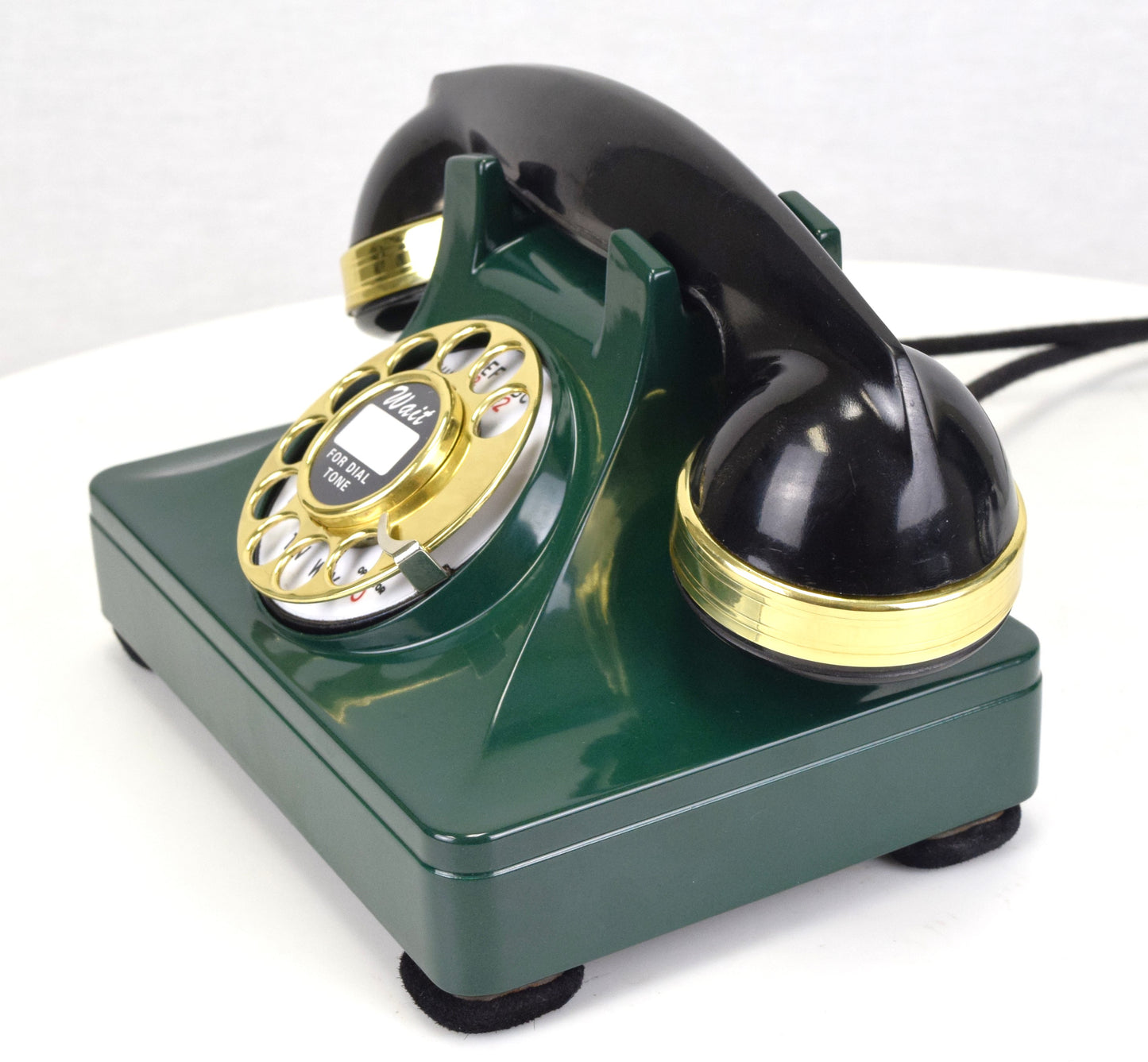 This North Electric Galion Deskphone has been refinished in a textured Forest Green finish and accented with brass trim.