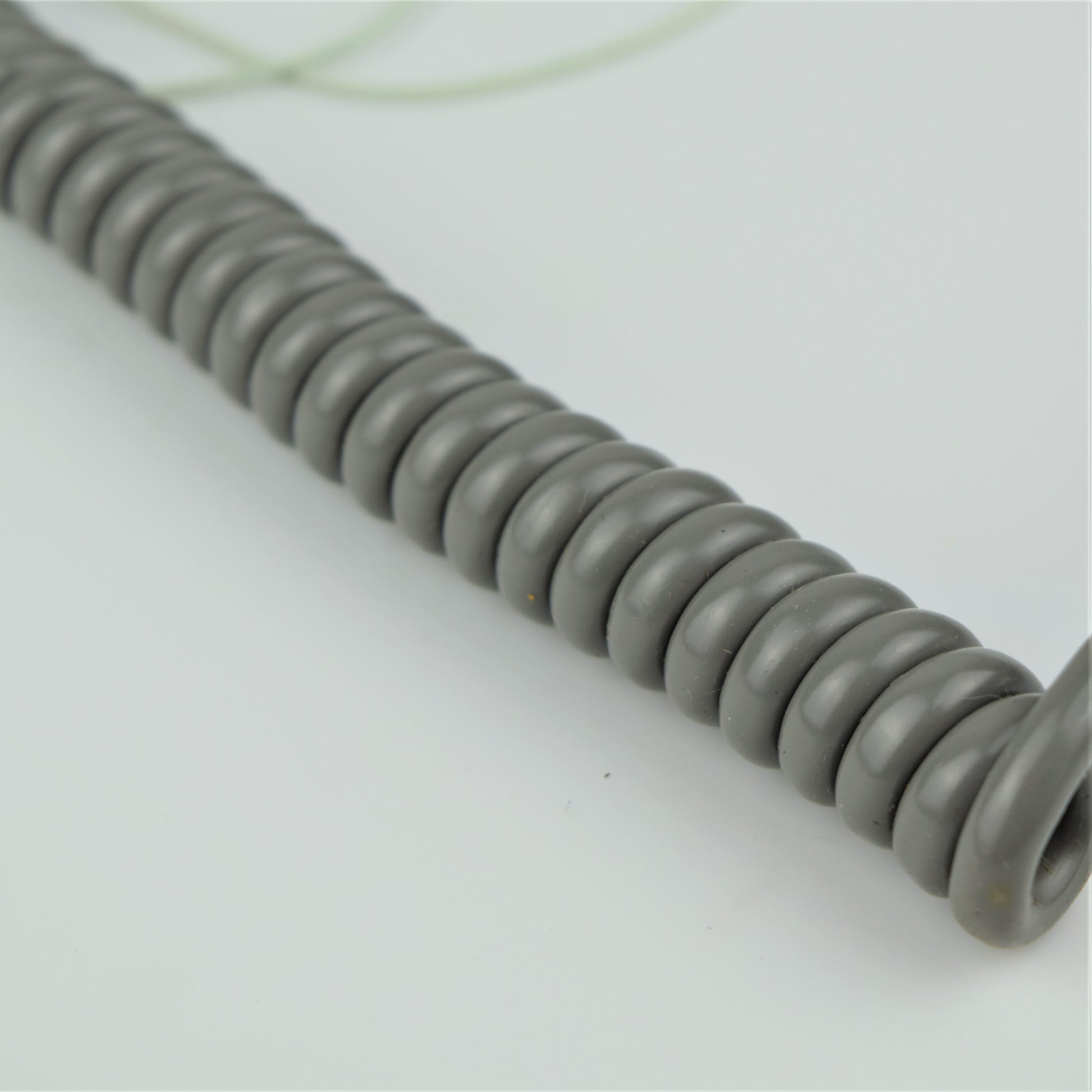 Cord - Handset - Grey - Hardwired Curly - 4 Conductor - Spade Terminations