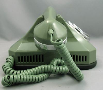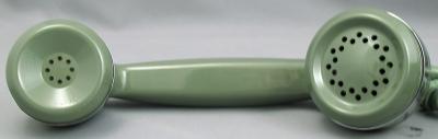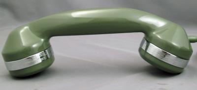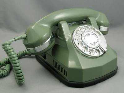 The Automatic Electric Model 40 Monophone was introduced in 1938. This combined phone includes all the components required to operate within the casing, eliminating the need for an external network subset and ringer. The AE40 is a graceful example of art deco design. These rugged phones were made of solid Bakelite and were available in a variety of colours with various trim options This particular unit is the deluxe "chrome trim" version. It has chrome bands on the handset, a chrome fingerwheel, and a chrome "pickup" bar under the handset. This particular Type 40 has been refinished in Aqua, is fully refurbished, and is in excellent working condition. The dial has been lubricated and timed to ensure that it will give years of trouble-free service. We have added finishing touch, we have added new cloth handset and line cords