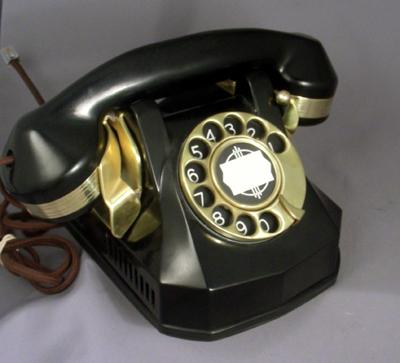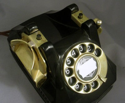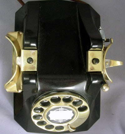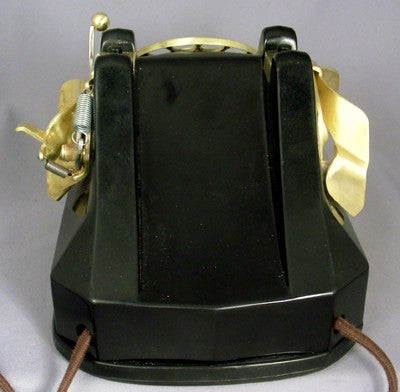 Built for the Navy this telephone is based on the type 40 Automatic Electric. The latching mechanism prevents the handset from falling off due to shipboard motion. Fully functional with all original parts, sounds perfect and rings with tuned solid brass internal gongs.