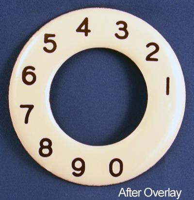 This particular overlay is a North Electric Dial plate. These dials were found predominatly on Galion telephones.