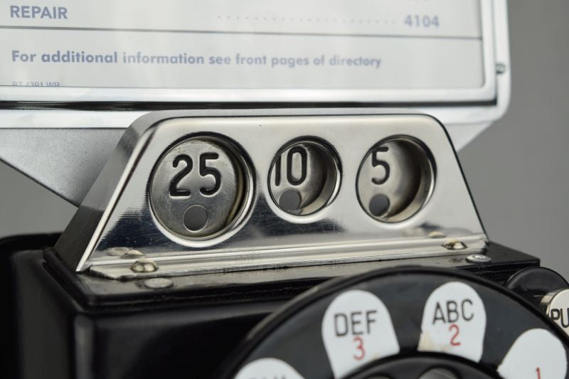 Here is a vintage working 1950s Model 233 3 slot payphone. The internal parts of this phone are all present and intact, and it has been wired with a modular line cord so that it will work on your home phone line. We can also install a ringer to notify you of incoming calls. Although you won't need a coin to make a call with this classic, the phone still emits the telltale "ding" as a coin is dropped. We are including the the keys to the coin vault and the top housing. Please note, the phone does not come with a coin box. Perfect for billiards rooms, game rooms, Pool side, family rooms or anywhere else. Your antique payphone will look great! This is a unique opportunity to own a classic piece of functional communications technology.