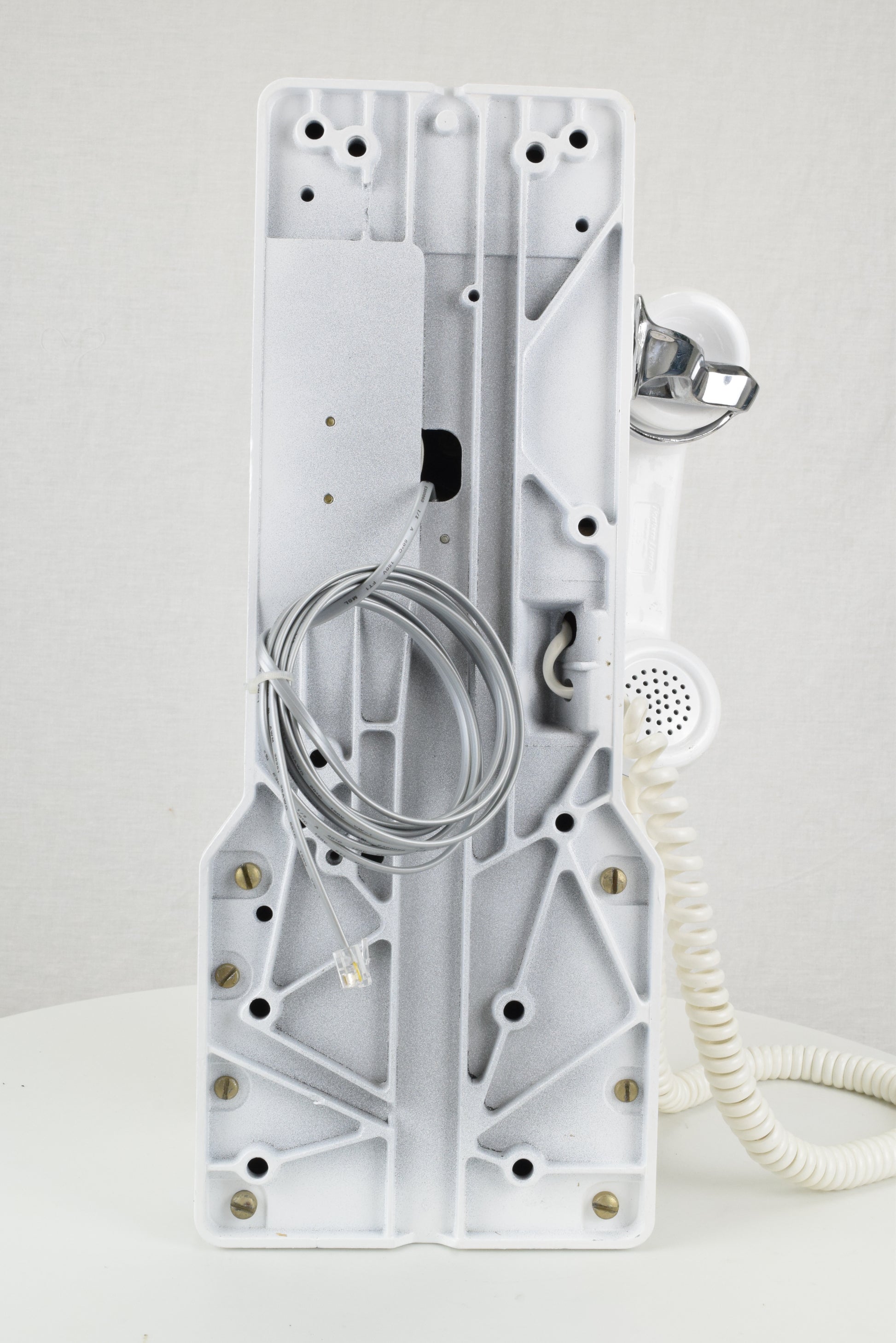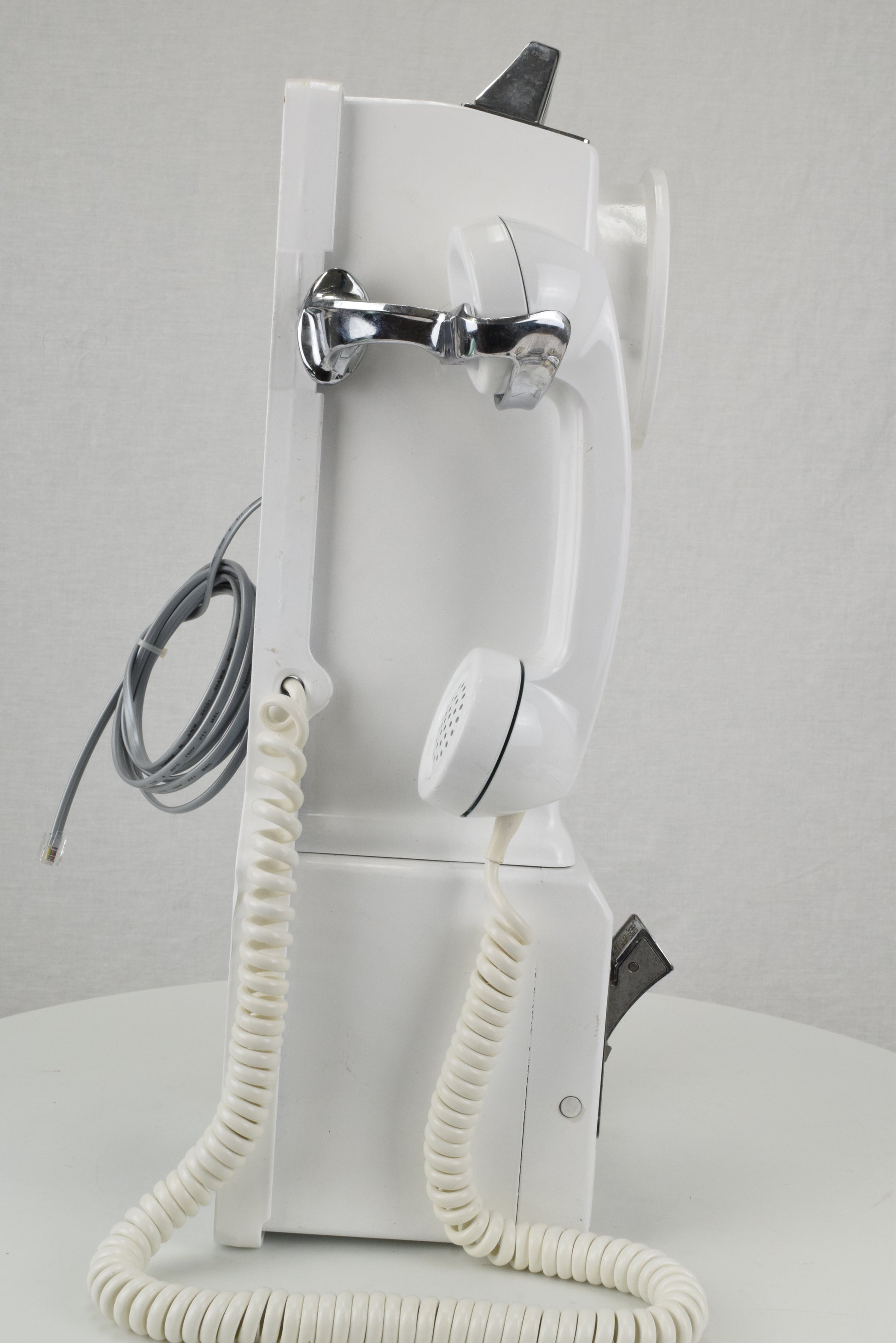 Cords – The phone has been outfitted with a brand new vinyl or optional chrome armored handset cord and a vinyl line cord. The line cord has a modular connection to facilitate a modern connection to your wall jack.