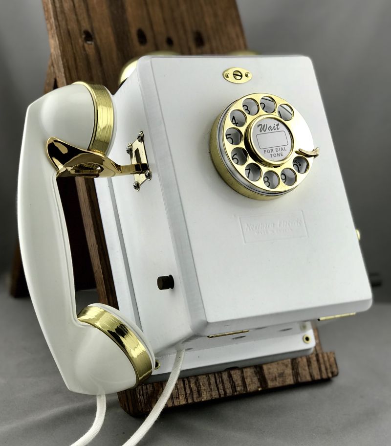 Cords – The phone has been outfitted with brand new cloth covered white cords that are made in house on the same type of equipment originally used by the phone companies. They look amazing. The line cord has a modular connection to facilitate a modern connection to your wall jack.