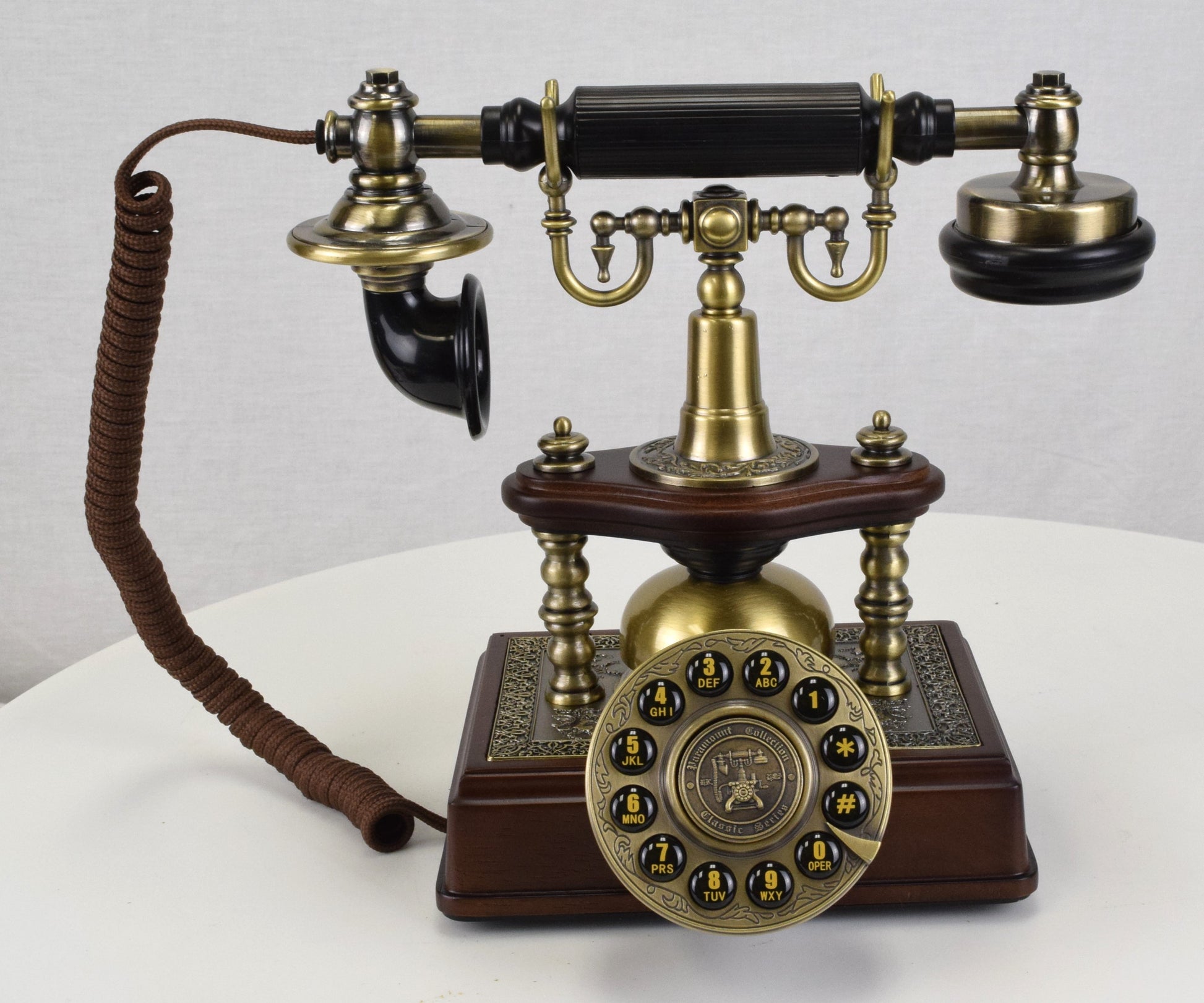 Introducing our exquisite 1894 French style telephone from the Paramount collection. This beautiful telephone was inspired by the classic elegance of a early french telephones, and it combines classic charm with modern convenience. Featuring push button dialing and a last number redial function, it effortlessly blends the luxurious past with the functionality of the present. The ringer can be adjusted to high, low, or completely turned off, allowing you to tailor your phone experience to your surroundings. With the receiver high or low volume settings, your conversations will be crystal clear. Elevate your décor with this beautifully crafted telephone, a stunning fusion of history and innovation.