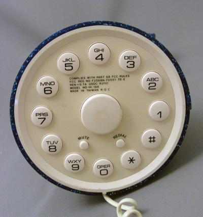 The on / off switch and the dial are on the base of the phone. The transmitter and receiver are on the front of the figure.