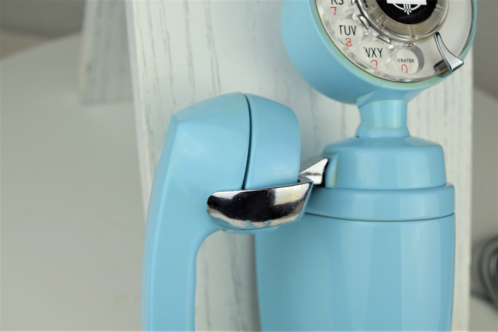 As a finishing touch, an aqua curly handset cord, and matching modern line cords have been added to this classic. All components have been fully overhauled and tested to ensure that they will function properly both now, and in the years to come.