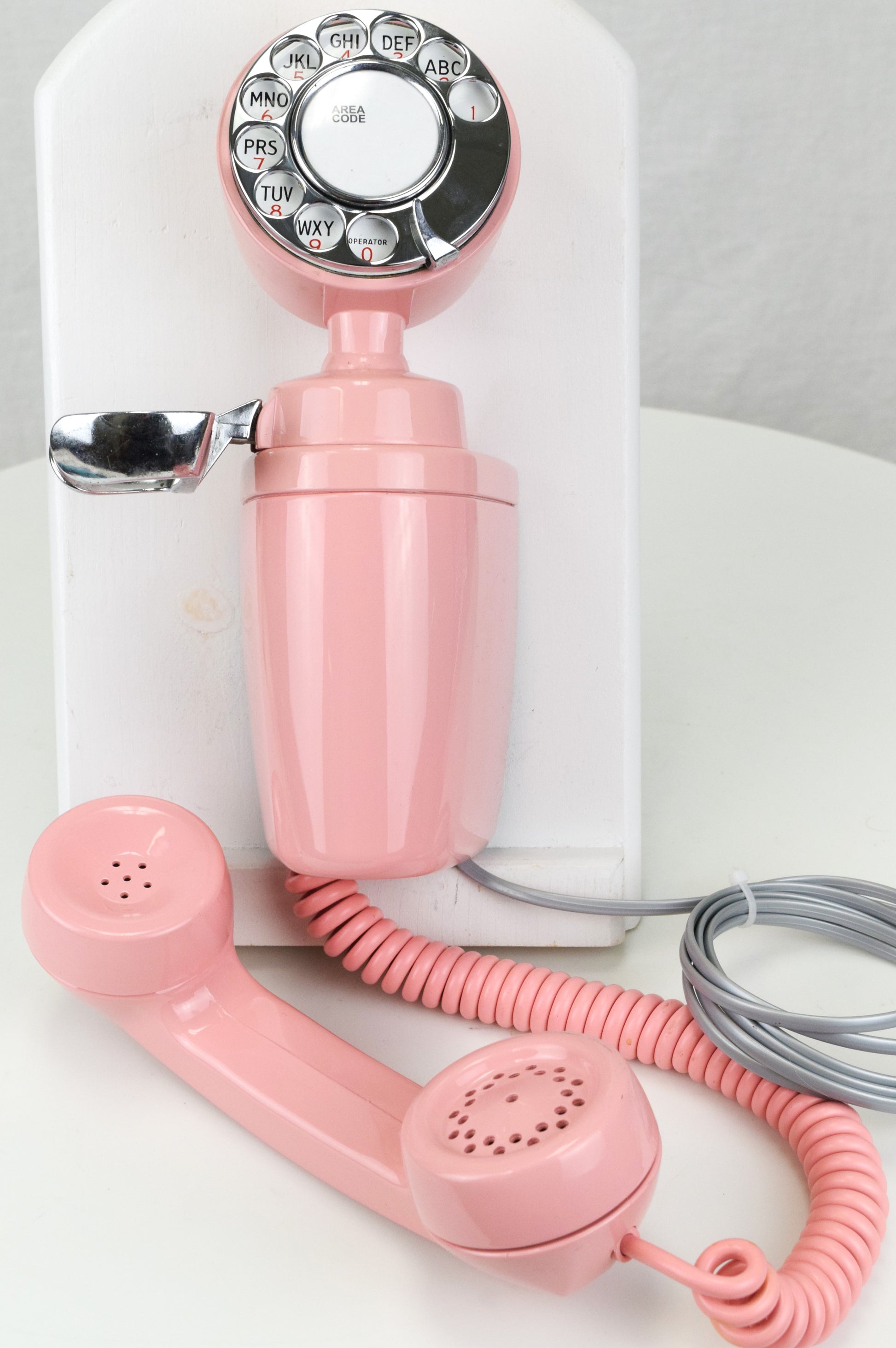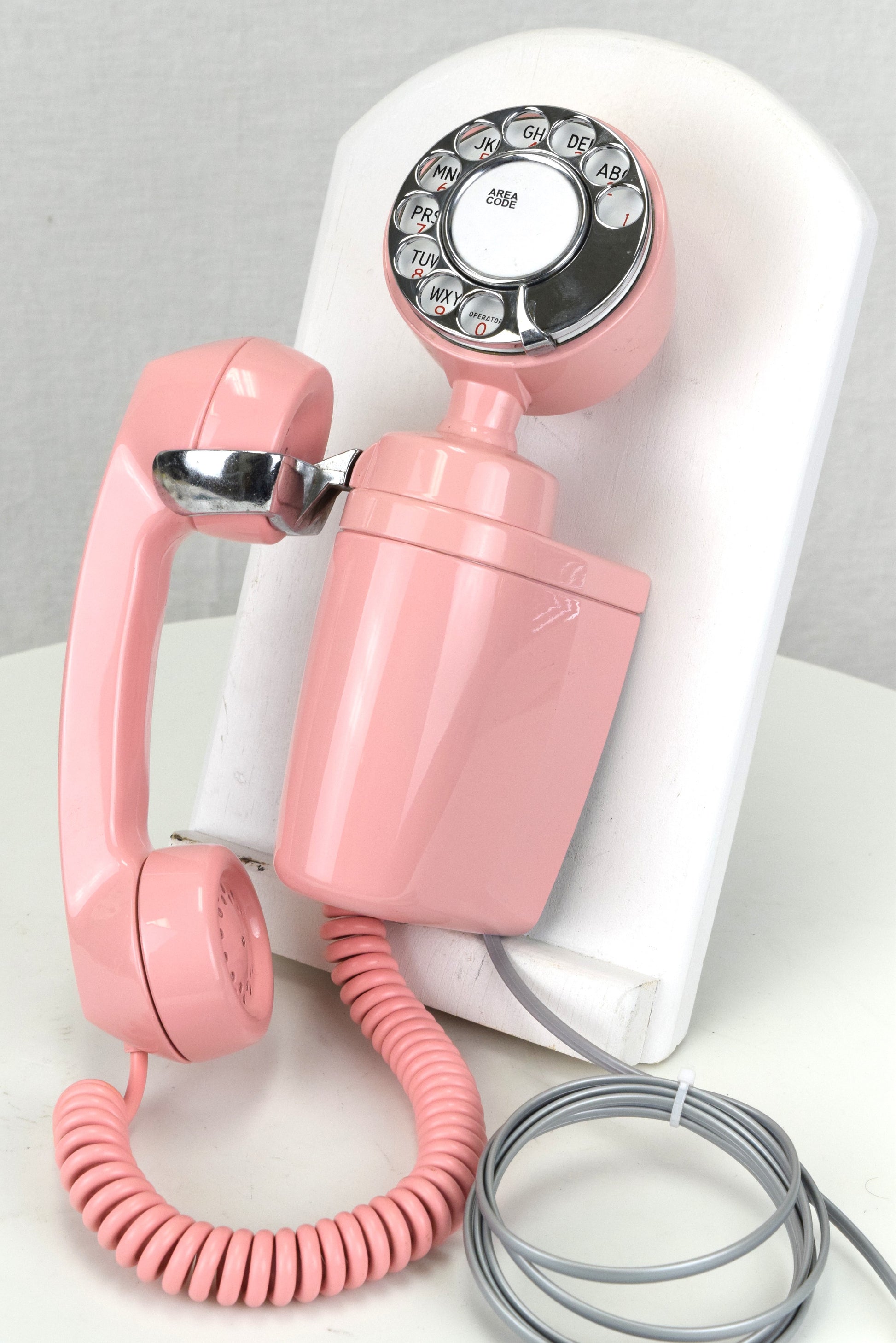 As a finishing touch, a new pink curly handset cord, and a pink modern modular line cord have been added to this classic. All components have been fully overhauled and tested to ensure that they will function properly both now, and in the years to come.