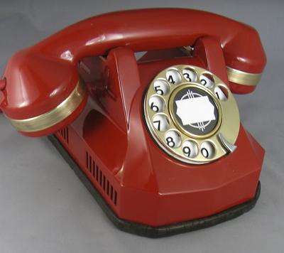 The Automatic Electric Model 40 Monophone was introduced in 1938. This combined phone includes all the components required to operate within the casing, eliminating the need for an external network subset and ringer. The AE40 is a graceful example of art deco design. These rugged phones were made of solid Bakelite and were available in a variety of colours with various trim options This particular unit is the deluxe "chrome trim" version. It has chrome bands on the handset, a chrome fingerwheel, and a chrome "pickup" bar under the handset. This particular Type 40 has been refinished in Aqua, is fully refurbished, and is in excellent working condition. The dial has been lubricated and timed to ensure that it will give years of trouble-free service. We have added finishing touch, we have added new cloth handset and line cords