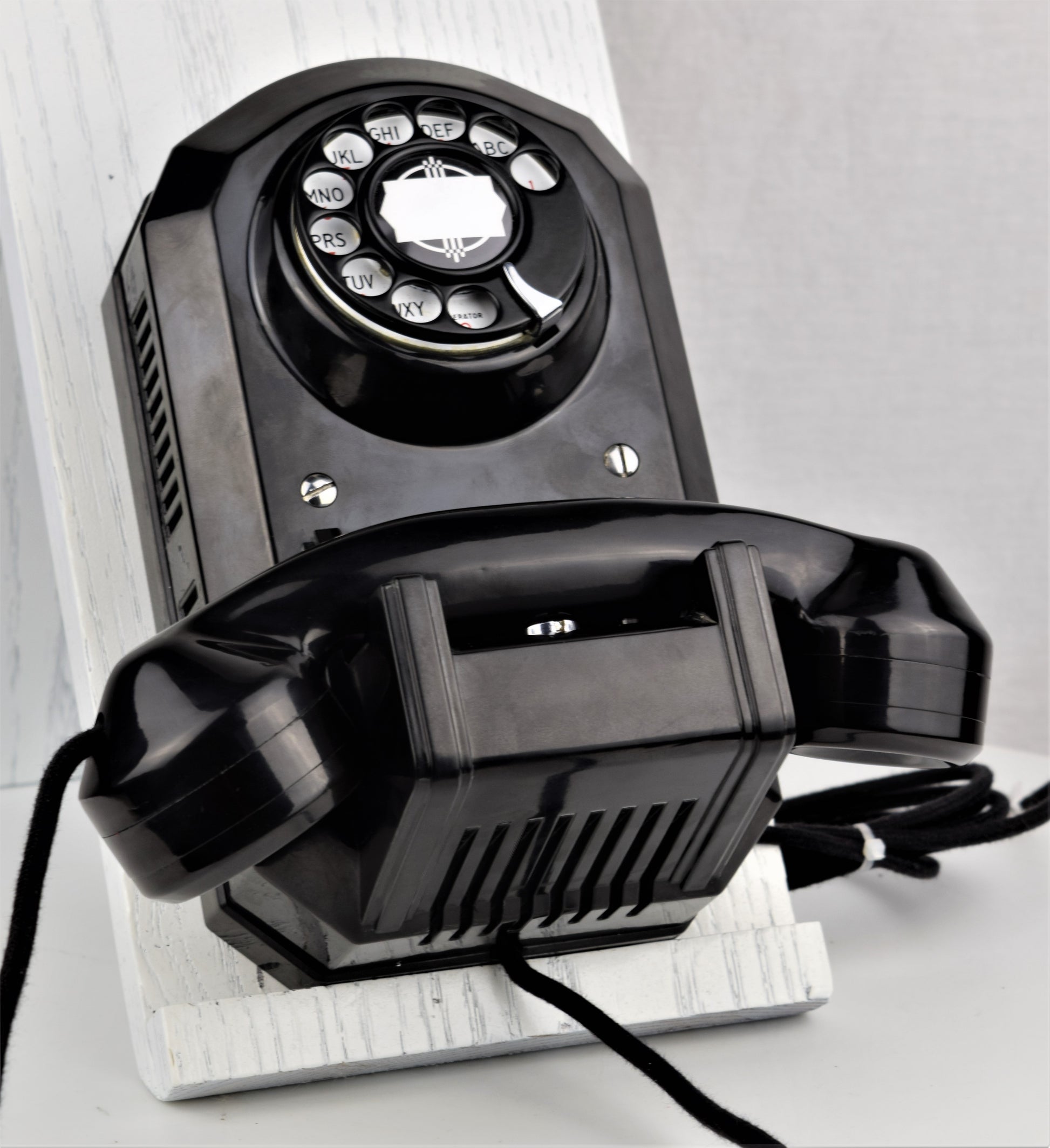 Cords – The phone has been outfitted with brand new cloth covered cords that are made in house on the same type of equipment originally used by the phone companies. They look amazing. You can choose from either black or brown cloth cords. The line cord has a modular connection to facilitate a modern connection to your wall jack.