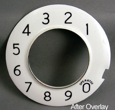 This particular overlay is for a Northern or Western Electric No 4 dial. It is similar to the No 2 132 version except that it has the notch for the internal fingerstop.