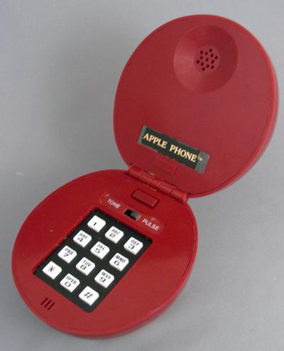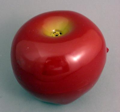 The Apple Telephone is a fully functioning phone featuring a modular connection and a pulse / tone switch. The transmitter, receiver, and keypad, are accessible by 'opening' the apple.